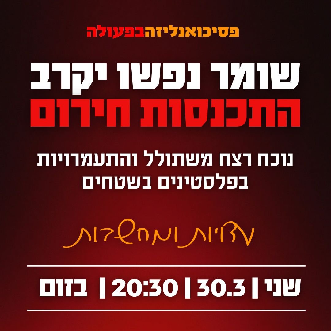 في 30.3، عُقدت الندوة عبر الإنترنت (ويبينار) بعنوان: “من يصون نفسه فليقترب” – بتنظيم من المعاهد التحليلية النفسية، حول العنف في الضفة الغربية.