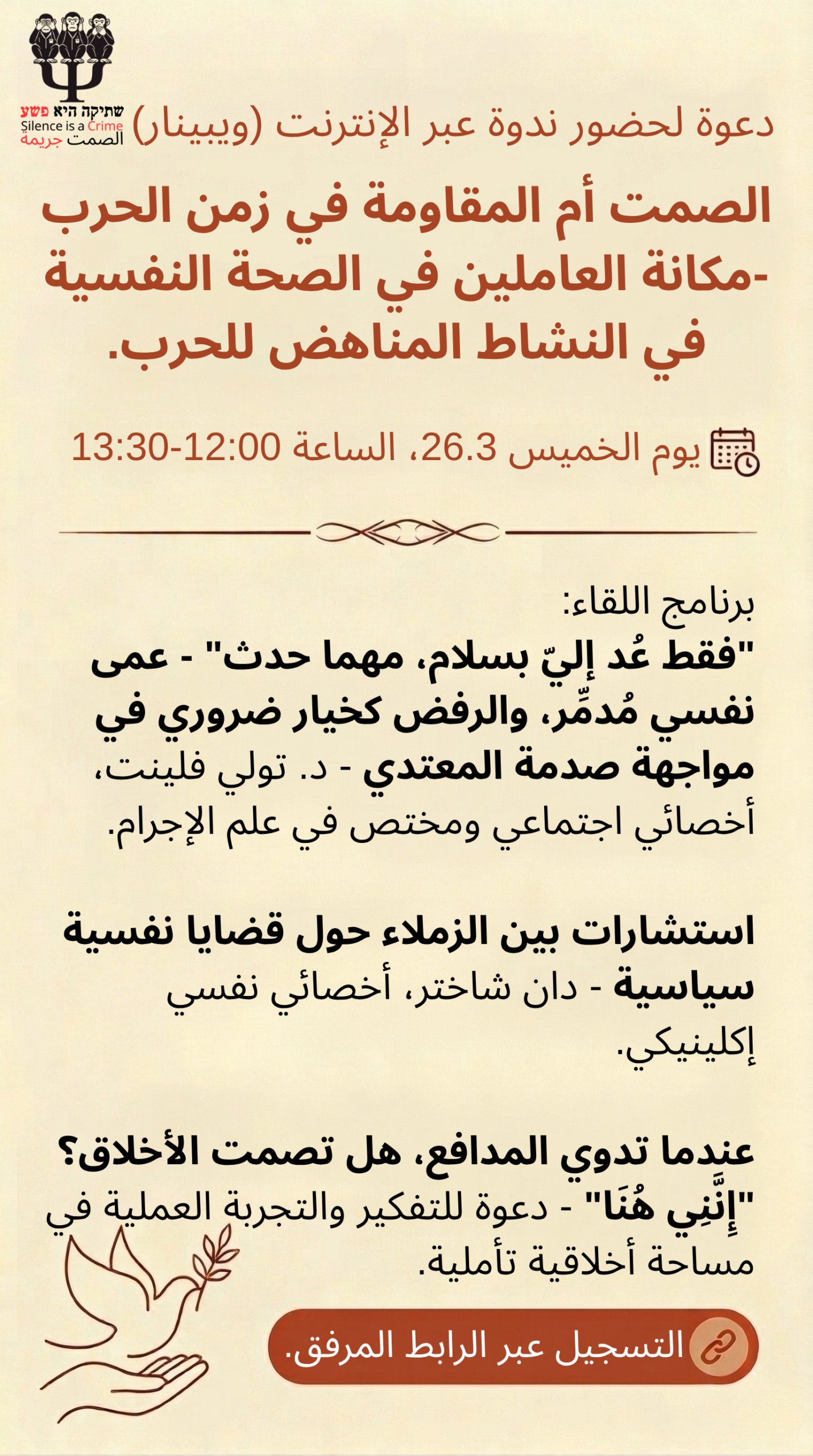 الصمت أم المقاومة في زمن الحرب – دور أخصائيي الصحة النفسية في النشاط المناهض للحرب.
