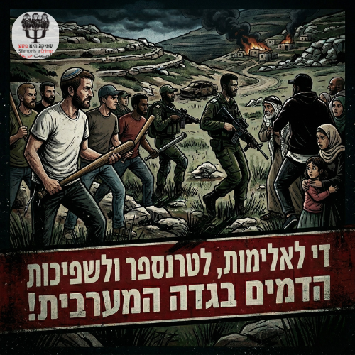 מאז תחילת המלחמה מול איראן נרצחו בגדה המערבית לפחות 19 פלסטינים מידי מתנחלים או מידי כוחות הביטחון, מאות אחרים איבדו את ביתם ורבים נוספים הותקפו ונפצעו. מעשים אלה לא נעשים על ידי קומץ או "נוער שוליים" אלא על ידי קבוצות גדולות והולכות, חלקן חלק מכוחות הביטחון וכולן מייצגות הלך רוח מרכזי בציבוריות הישראלית של ימינו.